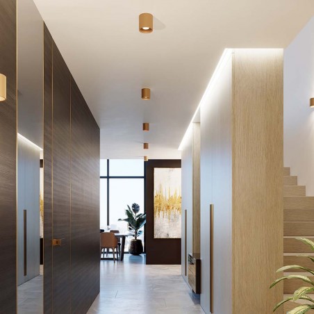 Ceiling spotlight of the Orbis collection for hallways and living rooms. It has a minimalist design of tubular shape, especially for modern rooms. It has a golden color finish ideal to complement the rest of the decor, with other lights and have a uniform illumination.